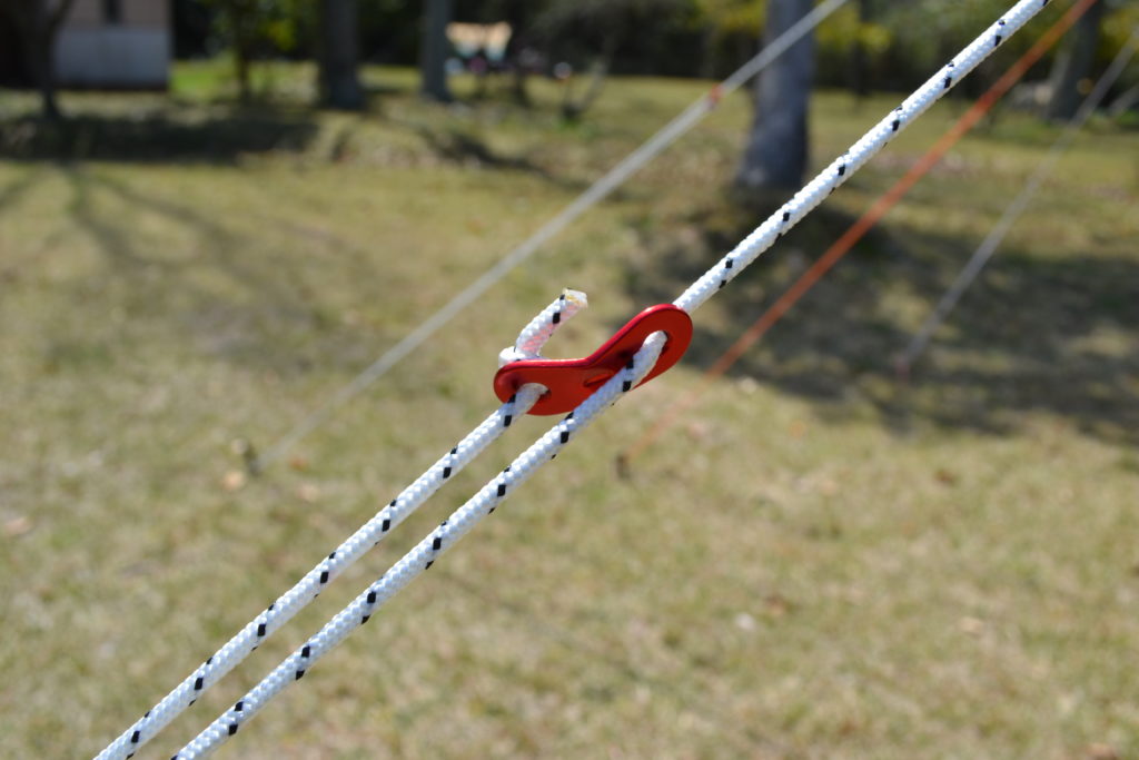 自在金具を使えばロープの複雑な結び方を知らなくてもロープを簡単に張ることができます。