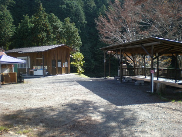 炊事棟、ゴミ捨て場。(近隣に温泉施設あり)