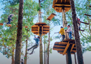 自然を生かした「フォレストアドベンチャー」では難易度に合わせてフィールドアスレチックも楽しめる他、10mの壁を登る「クリフチャレンジャー」
