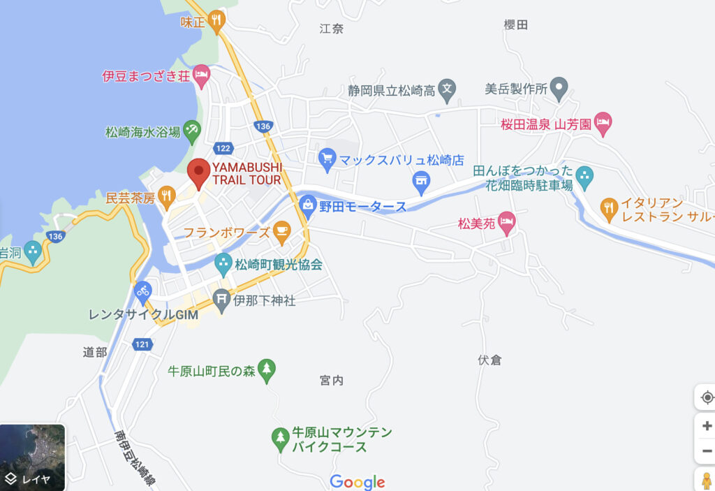 ヤマブシトレイルツアーは、伊豆半島の使われなくなった”古道 “を再生させて造ったコースを走るマウンテンバイクツアーです。山から海へ駆け降りる自然と歴史が詰まった最高のトレイルと、伊豆のグルメや温泉まで、ホスピタリティー溢れるフィールドをおもいっきり楽しんでください。コースの総延長は40㎞。体力や技術にあわせてバリーエーション豊かなトレイルを是非!