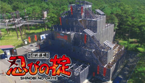 忍術道場「忍びの掟」は、地上13m、地上5階建てのアトラクションです。