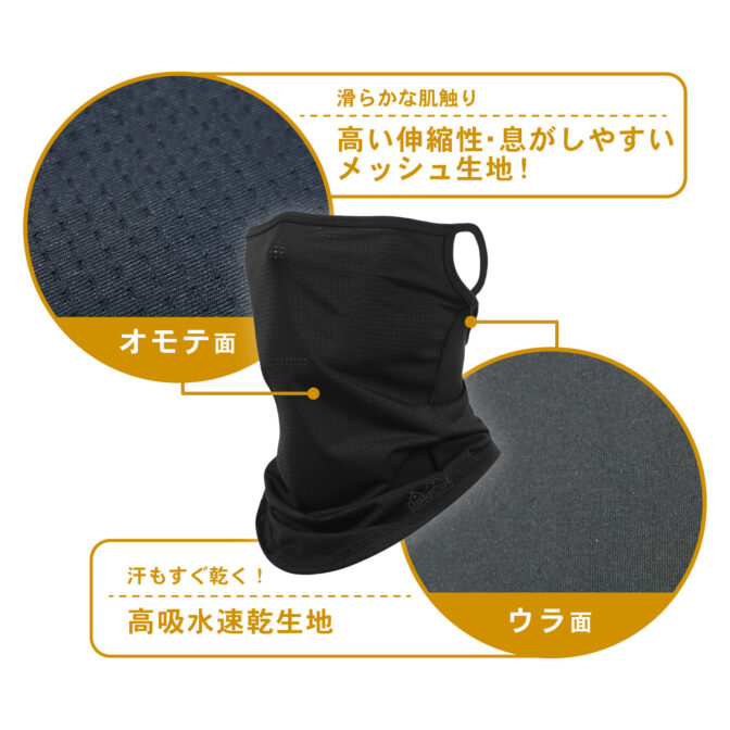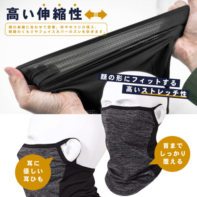 <AIRフェイスカバー> 耳掛け部分は伸縮性素材で重量も30グラムと軽く、まるで付けていない様な感覚で、ランニング時の激しい運動でも落ちづらい!