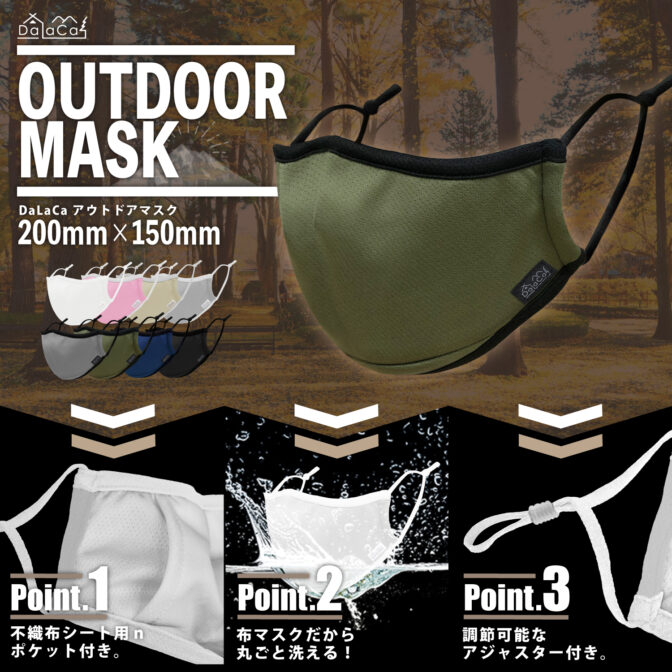 <2wayアウトドアマスク>内側に不織布フィルターを入れられるポケットを採用!ファッションマスクとしてだけではなく、専用フィルターをご使用いただくと不織布マスクとしてもお使いいただけます。 【ご購入する前にご確認ください】本品は感染を完全に防ぐものではありません。ウイルスや花粉などをカットする機能ではなく、飛沫防止を目的としています。感染防止のため、他の方とマスクの使い回し、共有などを避けてください。